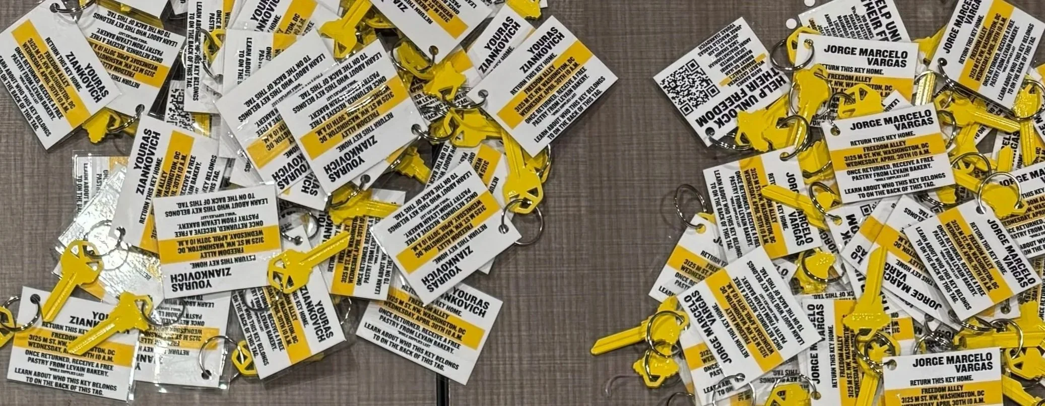 As project manager, I co-executed the campaign with Maren Fullerton, leading design, production, and logistics while coordinating with impacted families and partner organizations. Each key—tagged with a detained individual’s name and a QR code to their story—invited the public to “return it home.”